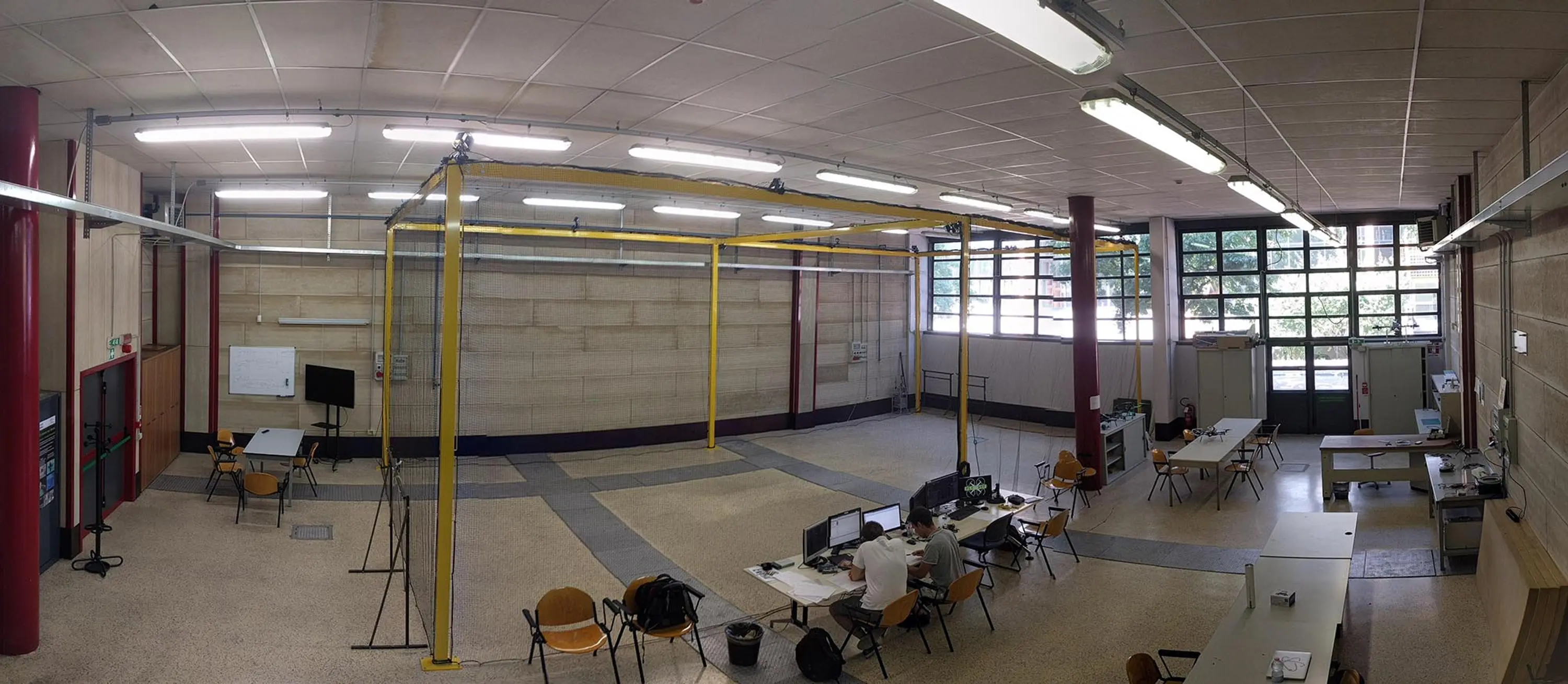Il laboratorio è un’arena di volo indoor con circa 290 m³ di volume operativo, interamente coperta da un sistema di motion capture 3D che consente misure accurate di posa e moto dei velivoli durante le prove. FlyART può essere utilizzata per: