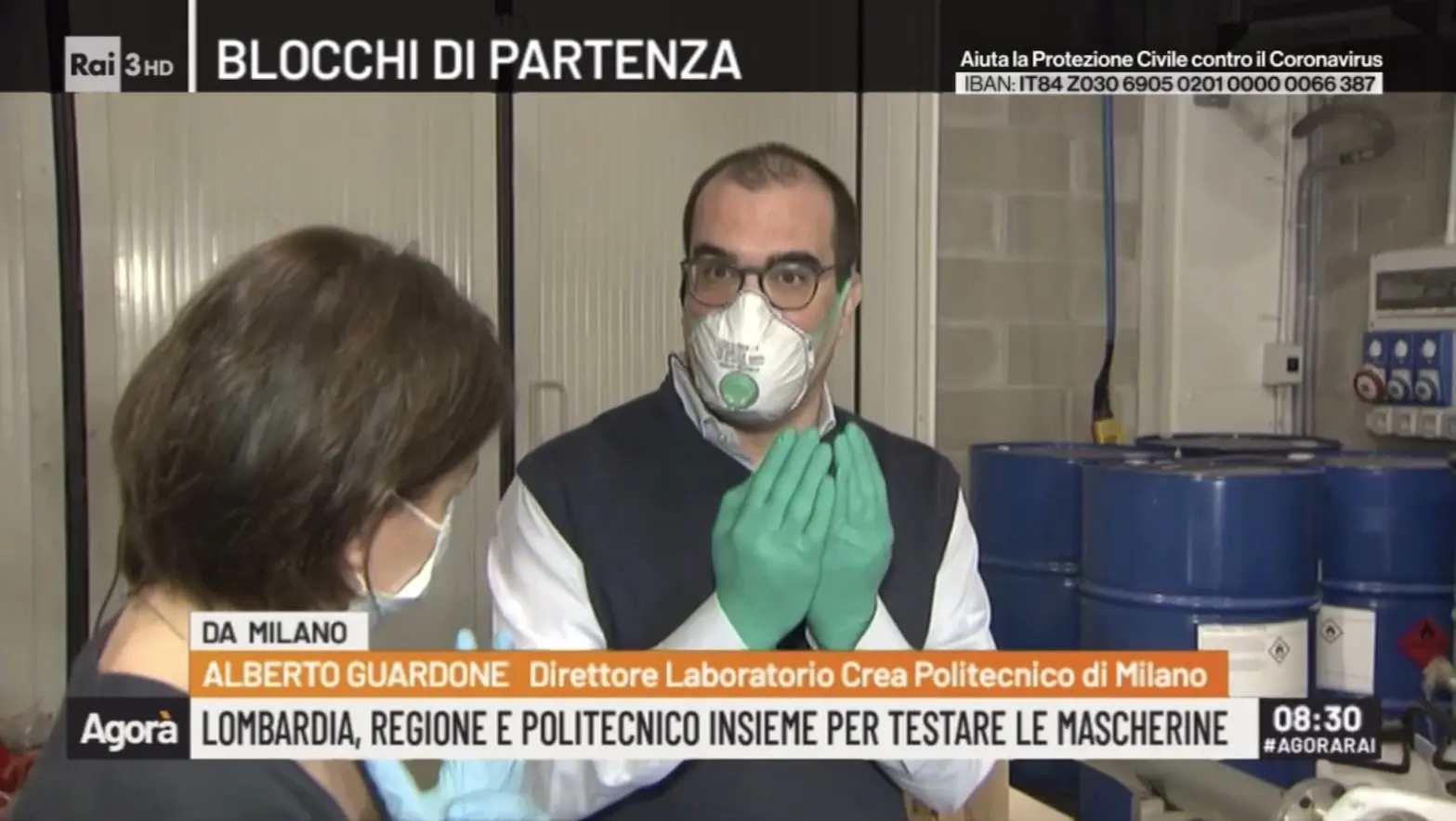 Il 24 marzo 2020 la trasmissione Agorà (Rai3) si è collegata in diretta con il Laboratorio interdipartimentale CREA (DAER e DENG) del Politecnico di Milano dove da giorni si provano diversi materiali, in collaborazione con la Regione Lombardia, per mascherine sanitarie in grado di proteggere dal Covid-19.